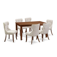 Casafoyer Dudley 7 Piece Set Consist Of A Rectangle Dining Room Table And 6 Doeskin Linen Fabric Parsons Chairs, 36X60 Inch, Dusi7-Mah-35