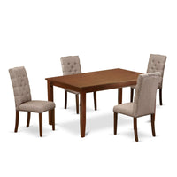 Casafoyer Duel5-Mah-16 Dudley 5 Piece Modern Set Includes A Rectangle Wooden Table And 4 Dark Khaki Linen Fabric Parson Dining Chairs, 36X60 Inch, Mahogany