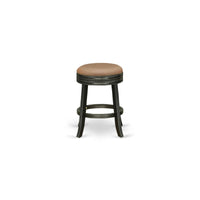 Casafoyer Dvs024-112 Devers Counter Stool Bar Chair - Round Shape Brown Roast Pu Leather Upholstered Pub Height Backless Chairs, 24 Inch Height, Black
