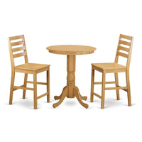 Casafoyer Edcf3-Oak-W 3 Piece Counter Height Dining Set For Small Spaces Contains A Round Dining Room Table With Pedestal And 2 Wooden Seat Chairs, 30X30 Inch, Oak