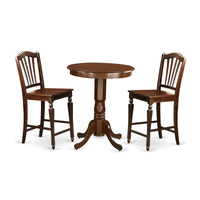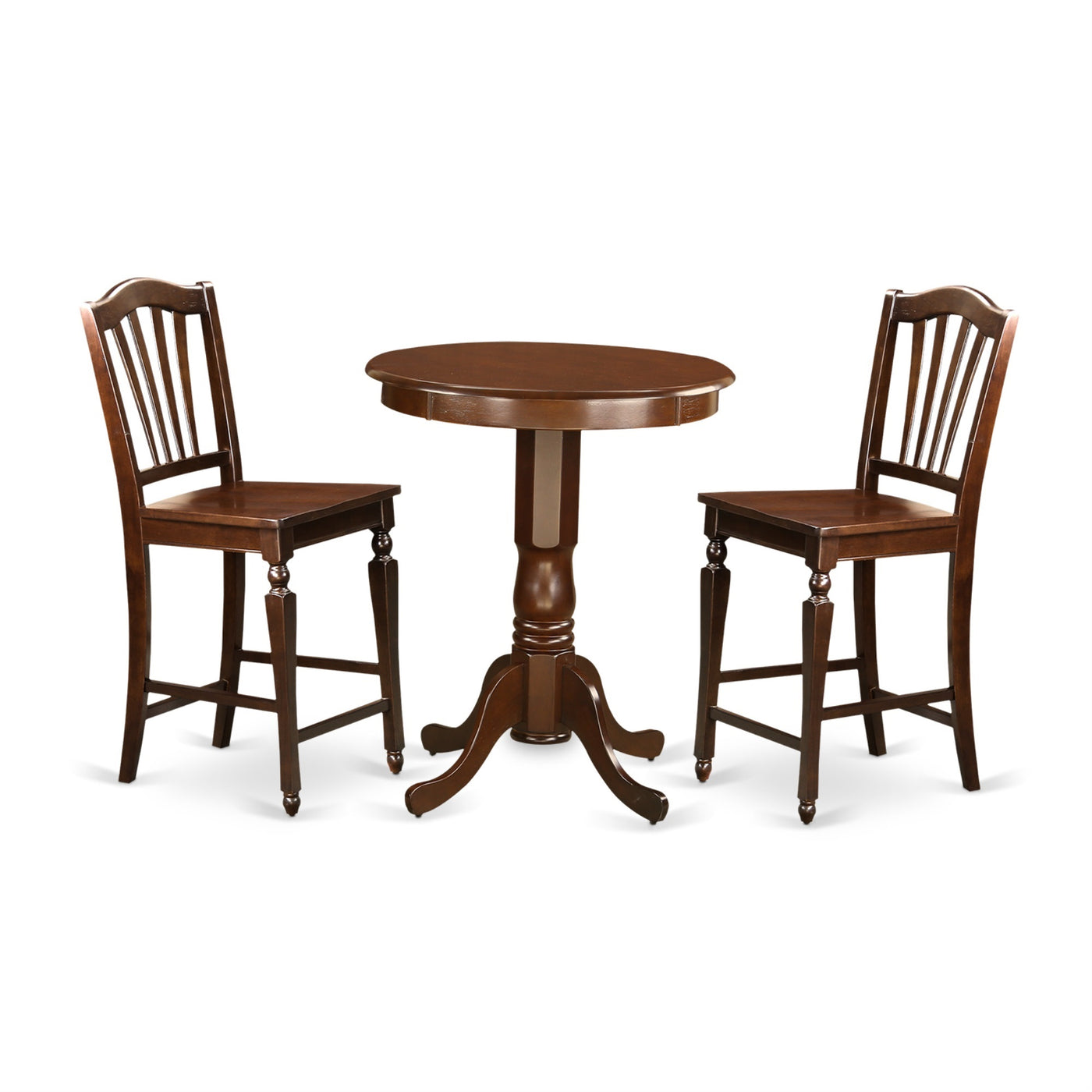 Casafoyer Edch3-Mah-W 3 Piece Counter Height Dining Set For Small Spaces Contains A Round Kitchen Table With Pedestal And 2 Dining Room Chairs, 30X30 Inch, Mahogany