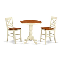 Casafoyer Edqu3-Whi-W 3 Piece Counter Height Dining Table Set Contains A Round Kitchen Table With Pedestal And 2 Dining Chairs, 30X30 Inch, Buttermilk & Cherry