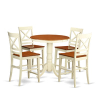 Casafoyer Edqu5-Whi-W 5 Piece Kitchen Counter Set Includes A Round Dining Room Table With Pedestal And 4 Dining Chairs, 30X30 Inch, Buttermilk & Cherry