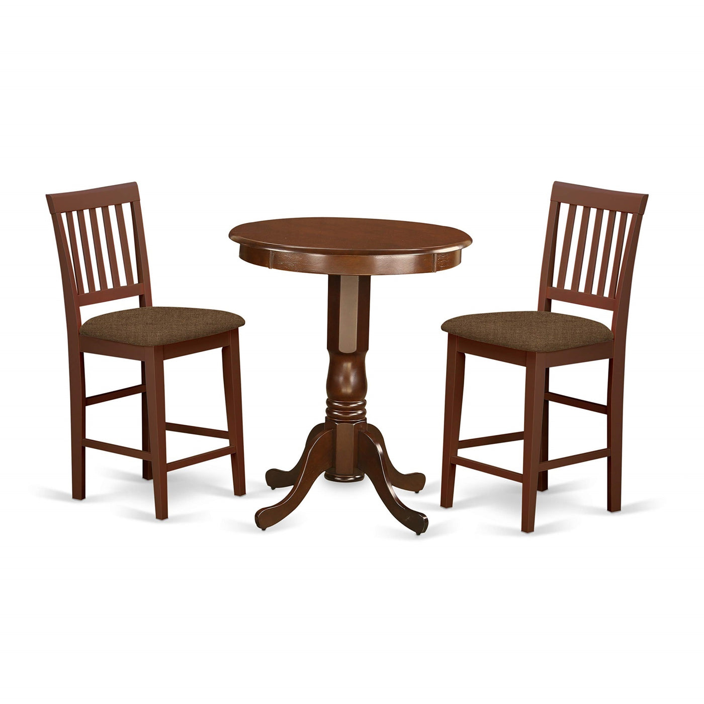 Casafoyer Edvn3-Mah-C 3 Piece Counter Set For Small Spaces Contains A Round Dining Room Table With Pedestal And 2 Linen Fabric Upholstered Chairs, 30X30 Inch, Mahogany