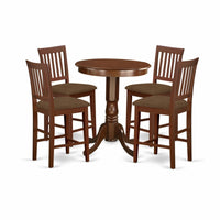 Casafoyer Edvn5-Mah-C 5 Piece Counter Height Dining Table Set Includes A Round Wooden Table With Pedestal And 4 Linen Fabric Upholstered Chairs, 30X30 Inch, Mahogany