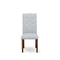 Casafoyer Elp8T05 Elsa Parson Dining Chairs - Button Tufted Nailhead Trim Grey Linen Fabric Upholstered Chairs, Set Of 2, Walnut