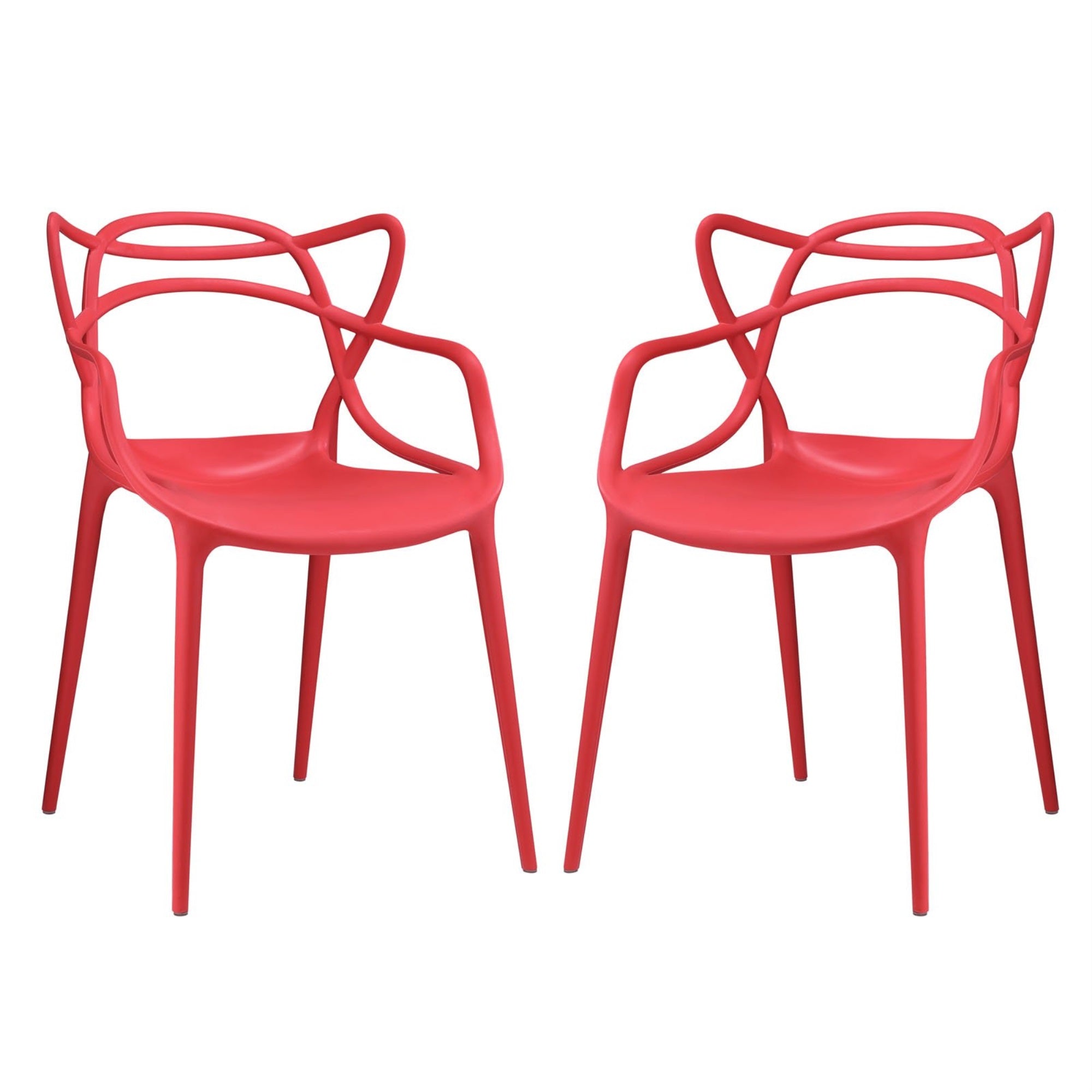 Casafoyer Entangled Modern Molded Plastic Two Dining Armchairs In Red