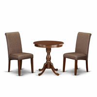Casafoyer Esba3-Mah-18 3 Piece Kitchen Table Set Contains A Round Dining Room Table With Pedestal And 2 Brown Linen Linen Fabric Parson Dining Chairs, 30X30 Inch, Mahogany