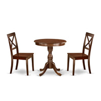 Esbo3-Mah-W East West Furniture - Esbo3-Mah-W - 3-Pc Modern Dining Table Set - 2 Dining Room Chairs And 1 Dining Table (Mahogany Finish), East West Furniture - Esbo3-Mah-W - 3-Pc Modern Dining Table Setthis Modern Dining Set Includes 2 Wood Kitchen Chairs And 1 Wooden Dining Table. This Wood Dining Table Has A Round Table Top And Pedestal Legs. The Solid Wood Frame And Back Ensure That These Modern Wood Chairs Sturdiness And Offers Decent Support To Your Back, In Addition To Their Ideal Size These Urban Style Chairs Are Trouble Free To Assemble And Easy To Rearrange. These Simple But Charming Wood Chairs Will Add Ambiance And Style To Your Dining Room. Give Your Home A Pop Of Chic Style With This Must Have Kitchen Dining Set. A Contemporary Twist On A Classic Design, This Eye-Catching Dining Room Set Design Will Liven Up Any Timeless Appeal. Just By Switching Out Your Kitchen Chairs And Wood Dining Table, You Can Effortlessly Refresh Your Dining Space. This Kitchen Dining Room Set Is Very Easy To Assemble. You Only Need Around 30 Minutes To Build This Modern Dining Table Set. This Modern Dining Set Comes With All The Necessary Hardware To Assemble This Dining Room Set. These Wooden Dining Room Chairs Are Easy To Carry Or Move Around. Enjoy With East West Furniture!Features:Material: Woodseat Material: Woodwood Chairs Color: Mahoganywood Dining Table Color: Mahoganydining Table Dimensions Are: Length 30; Width 30; Height 36.Wood Chairs Dimensions Are: Length 21; Width 18; Height 38.Included In The Package: 1 Beautiful Dining Table And 2 Beautiful Wood Chairs.