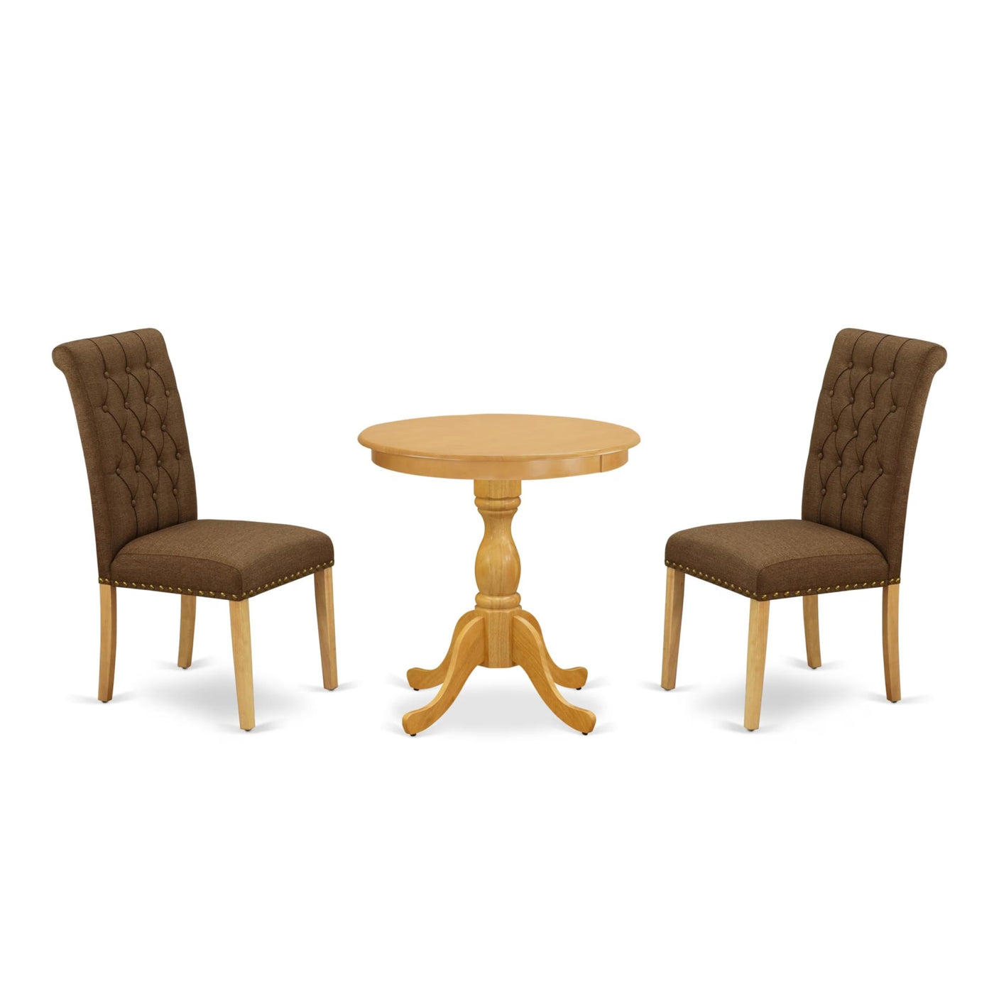 Casafoyer Esbr3-Oak-18 3 Piece Kitchen Table & Chairs Set Contains A Round Dining Room Table With Pedestal And 2 Brown Linen Linen Fabric Parsons Chairs, 30X30 Inch, Oak