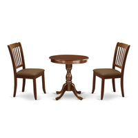 Casafoyer Esda3-Mah-C 3 Piece Kitchen Table Set For Small Spaces Contains A Round Dining Table With Pedestal And 2 Linen Fabric Dining Room Chairs, 30X30 Inch, Mahogany