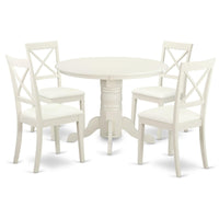 Shbo5-Whi-Lc Shbo5-Lwh-Lc 5 Piece Sudbury Set-Round Dinette Table And 4 Chairs With Faux Leather Seat In Linen White Finish., Lighten Up A Dining Area Or Create A Comfortable Dining Space In A Kitchen Space With This Amazing 5 Piece Dining Room Table Set. This Set Consists Of A Round Pedestal Table And Four Sheaf Back Style Dining Chairs With Faux Leather Seat. The Linen White Finish Adds An Ideal Country Cottage Or Shabby Chic Look To Any Dining Area Or Kitchen. This Round Table Is Suitable For Kitchens Or Dining Rooms. Its Compact Size Makes It Great For Apartments, Condos Or Other Small Spaces.