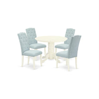 Casafoyer Shce5-Whi-15 5 Piece Dining Room Furniture Set Includes A Round Kitchen Table With Pedestal And 4 Baby Blue Linen Fabric Upholstered Chairs, 42X42 Inch
