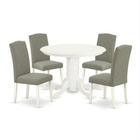 Shen5-Lwh-06 Shen5-Lwh-06 5Pc Rounded 42 Inch Dining Table And Four Parson Chair With Linen White Leg And Linen Fabric Dark Shitake, Turn Your House Into A Home With This Excellent And Sophisticated Shen5-Lwh-06 Kitchen Dining Set. Classic Round Kitchen Dinette Table Offers A Stunning Linen White Color To Enhance Any Kind Of Living Area Or Home'S Kitchen Area For Any Occasions. A Thick Curled Ornate Pedestal Base Provides Strength And State-Of-The-Art Impression To The Round Dining Room Table. This Gorgeous Linen White Kitchen Dinette Table Will Bring The Room Together As It Draws In With Is Glossy Design. No Heat Treated Pressured Wood Like Mdf, Particle Board Or Veneer Top Fabricated. This Amazing Slick Kitchen Table Makes A Really Good Addition For All Kitchen Space And Corresponds All Sorts Of Dining-Room Concepts. This Simple But Charming Parson Chair Will Add Ambiance And Style To Your Dining-Room. A Contemporary Twist On A Classic Design, This Eye-Catching Design Will Liven Up Any Look. The Traditional Parson Gives This Chair A Touch Of Familiar Charm, While The Linen Fabric-Dark Shitake Color And Clean-Lined Design Elevate This Chair With Modern Flair. Replacing The Old Dining Set With This One, You Can Effortlessly Refresh Your Dining Space. Straight Legs Gives This Design A Hint Of Well-Worn Style, While Its Arched Silhouette And Nail Head Trim Round Out The Look With Classic Character. This Budget Friendly, Durable And Comfortable Dining Set Can Be Good Choice If You Are Looking For A Great Dining Time Experience With Family And Friends.Table Specifications: Material: Asian Hardwoodcolor: Linen Whitedimensions: Length 42; Width 42; Height 30Weight Capacity: 300 Lbschair Specifications: Frame Material: Asian Hardwoodfabric: Linen Fabriccushion Material: Foamfabric Color: Dark Shitakeleg Color: Linen Whitedimensions: Length 23; Width 18; Height 40Weight Capacity: 300 Lbsincludes:1 X Round Table4 X Parson Chairn.B.: Hardware Package And Instruction Manual Is Located In/Under The Seat.