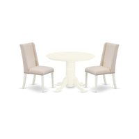Casafoyer Shfl3-Whi-01 3 Piece Room Set Contains A Round Kitchen Table With Pedestal And 2 Cream Linen Fabric Parson Dining Chairs, 42X42 Inch