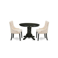 Casafoyer Shfr3-Blk-02 3 Piece Modern Set Contains A Round Kitchen Table With Pedestal And 2 Light Beige Linen Fabric Parson Dining Chairs, 42X42 Inch