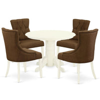 Casafoyer Shfr5-Whi-18 5 Piece Set Includes A Round Dining Room Table With Pedestal And 4 Brown Linen Fabric Parsons Dinette Chairs, 42X42 Inch