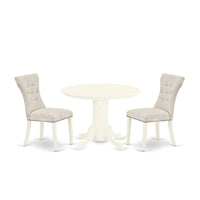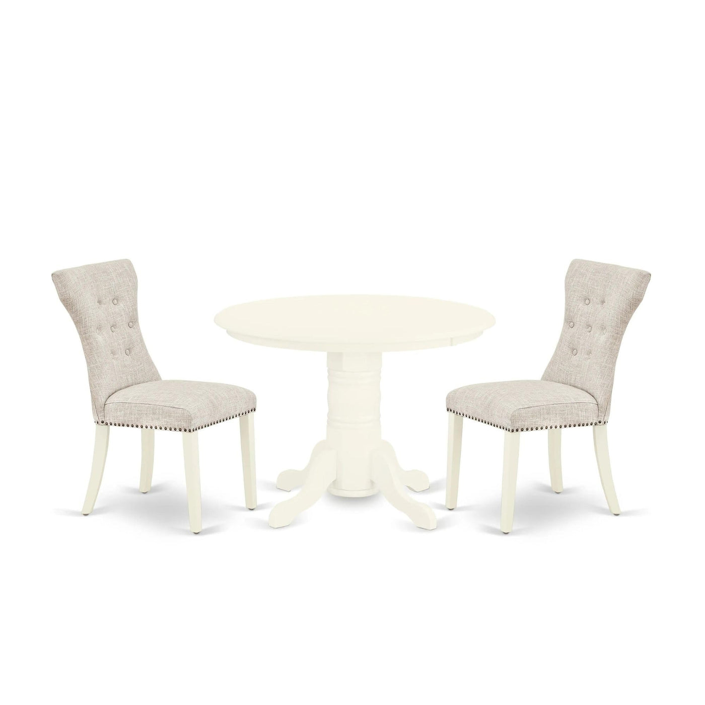 Casafoyer Shga3-Whi-35 3 Piece Dining Set Contains A Round Kitchen Table With Pedestal And 2 Doeskin Linen Fabric Parson Dining Room Chairs, 42X42 Inch, Linen White