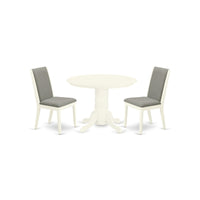 Casafoyer Shla3-Whi-06 3 Piece Dining Table Set For Small Spaces Contains A Round Kitchen Table With Pedestal And 2 Shitake Linen Fabric Upholstered Chairs, 42X42 Inch, Linen White