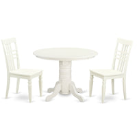 Casafoyer Shlg3-Lwh-W 3 Piece Modern Dining Table Set Contains A Round Kitchen Table With Pedestal And 2 Dining Chairs, 42X42 Inch, Linen White