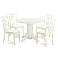 Shlg5-Lwh-W Shlg5-Lwh-W 5 Pc Small Dinette Set With A Dining Table And 4 Dining Chairs In Linen White , Skillfully Constructed From Top-Quality Asian Solid Wood. This Excellent Circular Small Dinette Set Combines An Old-Fashioned Look And Feel While Having More Modern, Sleek Design. Dining Table Set That Has A Rounded Stand Would Certainly Accommodate The Kitchen Dining Chairs Enough Spaciousness And Also Comfortability With Out Crowding Together. Easy Outlines Throughout The Small Kitchen Table'S Pedestal Retain The Look Of The Small Kitchen Table Set Light And Charming. A Good Solid Silk Exterior On This Dining Room Tableand Also Dining Chairs Helps To Protect The Distinct, Linen White Tone, Helping To Make These Kinds Of Sets Resilient, Easy To Tidy And Just The Thing For Your Kitchen.