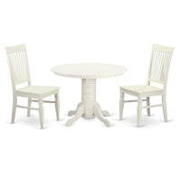 Casafoyer Shwe3-Whi-W 3 Piece Dining Room Table Set Contains A Round Kitchen Table With Pedestal And 2 Dining Chairs, 42X42 Inch, Linen White