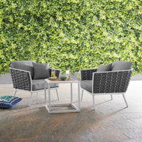 Casafoyer Stance Outdoor Patio Aluminum, Side Table And Two Armchairs, White Gray