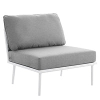 Gather Family And Friends For Pleasant Weather And Good Conversation With The Stance Outdoor Patio Armless Chair. Boasting A Contemporary Modern Look, The Stance Armless Chair Features A Woven Polyester Fabric Rope Seat Back And Flared Powder-Coated Aluminum Frame, While Water Resistant All-Weather Fabric Cushions With Dense Foam Padding Provide A Relaxing Spot To Lounge. This Is A Versatile Patio Armless Chair Designed For Long-Lasting Durability. Each Piece In The Stance Outdoor Collection Can Be Mixed And Matched And Effortlessly Arranged To Fit The Spontaneous Needs Of You And Your Guests. Stance Includes Non-Marking, Height-Adjustable Foot Caps. Assembly Required. Chair Weight Capacity: 331 Lbs. Set Includes: One - Stance Aluminum Armless Chair