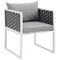 Gather Family And Friends For Pleasant Weather And Good Conversation With The Stance Outdoor Collection For An Exceptional Al Fresco Dining Experience. Boasting A Contemporary Modern Look, Stance Features A Woven Polyester Fabric Rope Seat Back And Sleek Powder-Coated Aluminum Frame, While Waterproof All-Weather Fabric Cushions With Dense Foam Padding Provide A Comfortable Seating Experience. A Versatile Set Designed For Long-Lasting Durability, The Stance Collection Can Be Mixed And Matched And Effortlessly Arranged To Fit The Spontaneous Needs Of You And Your Guests. Comes Fully Assembled. Chair Weight Capacity: 331 Lbs.Set Includes:One - Stance Dining Armchair