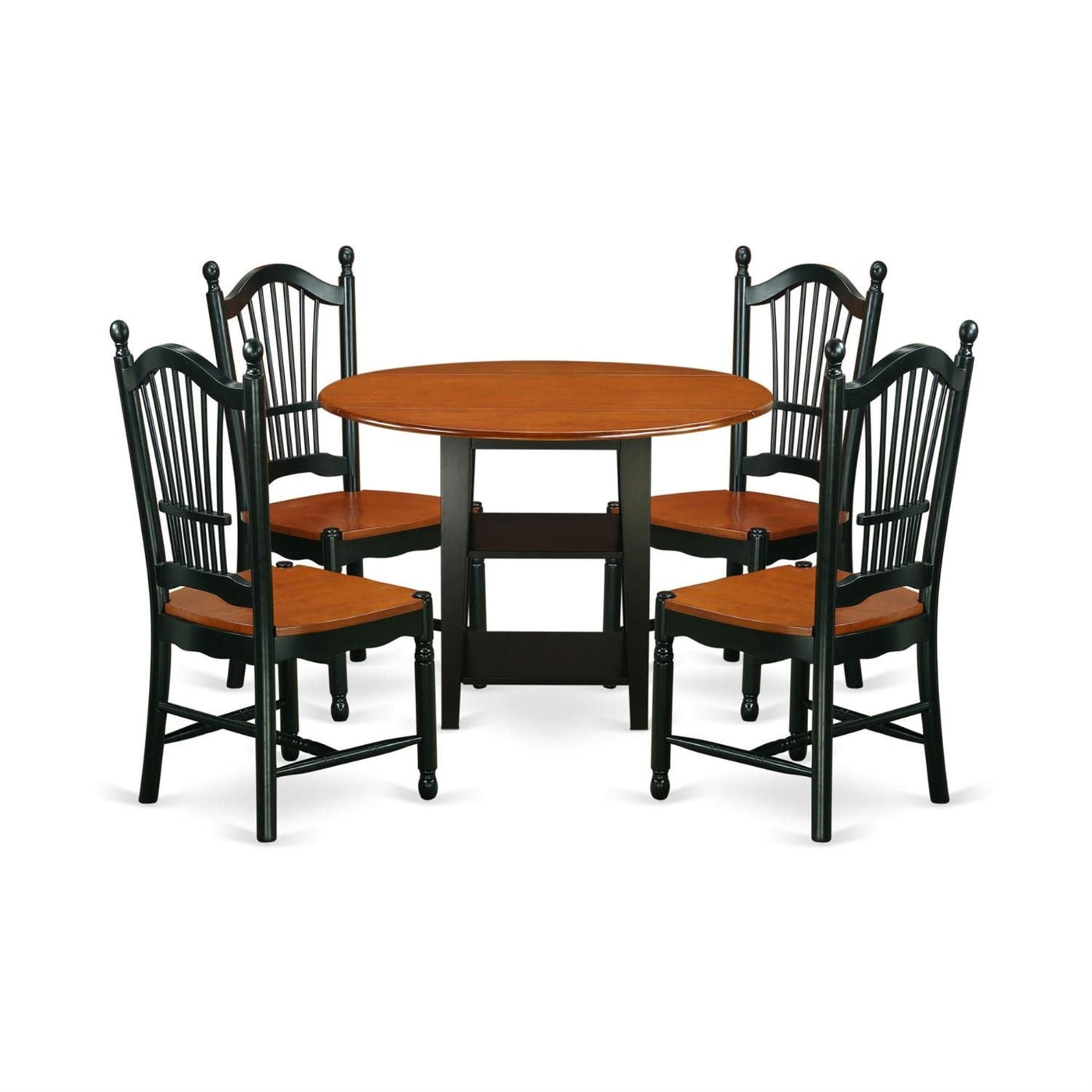 Casafoyer Sudo5-Bch-W 5 Piece Dining Set Includes A Round Dining Room Table With Dropleaf & Shelves And 4 Kitchen Chairs, 42X42 Inch, Black & Cherry