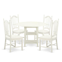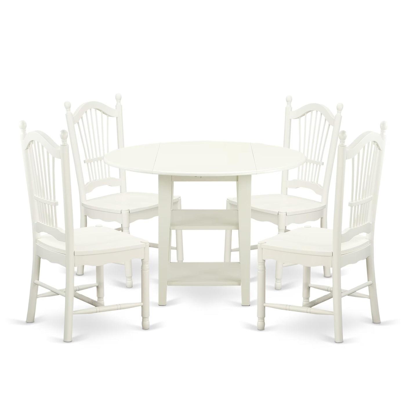 Casafoyer Sudo5-Lwh-W 5 Piece Dining Room Furniture Set Includes A Round Kitchen Table With Dropleaf & Shelves And 4 Dining Chairs, 42X42 Inch, Linen White
