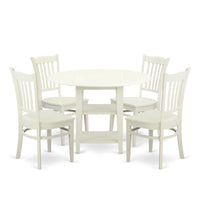 Casafoyer Sugr5-Lwh-W Sudbury 5 Piece Set For 4 Includes A Round Table With Dropleaf & Shelves And 4 Kitchen Dining Chairs, 42X42 Inch