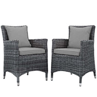 Casafoyer Summon Wicker Rattan Aluminum Outdoor Patio Two Dining Arm Chairs With Sunbrella Fabric Cushions In Canvas Gray