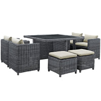 Experience The Outdoors With Exceptional Comfort And Quality. Summon Offers An Exquisite Two-Tone Synthetic Rattan Weave, Plush All-Weather Cushions With Industry-Leading Sunbrella Fabric, Uv Protection, And A Sturdy Powder-Coated Aluminum Frame. Featuring Rounded Arms And An Elegant Modern Look, Summon Is An Avant-Garde Outdoor Sectional Series Well-Equipped For Enhancing Patio, Backyard, Or Poolside Gatherings. This Installment Of The Series Is An Outdoor Patio Dining Set.Set Includes:Four - Summon Outdoor Wicker Patio Stoolsfour - Summon Outdoor Wicker Patio Chairsone - Summon Outdoor Wicker Patio Table