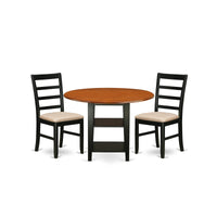 Casafoyer Supf3-Bch-C 3 Piece Dining Room Set Contains A Round Kitchen Table With Dropleaf & Shelves And 2 Linen Fabric Upholstered Chairs, 42X42 Inch, Black & Cherry