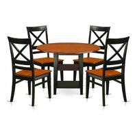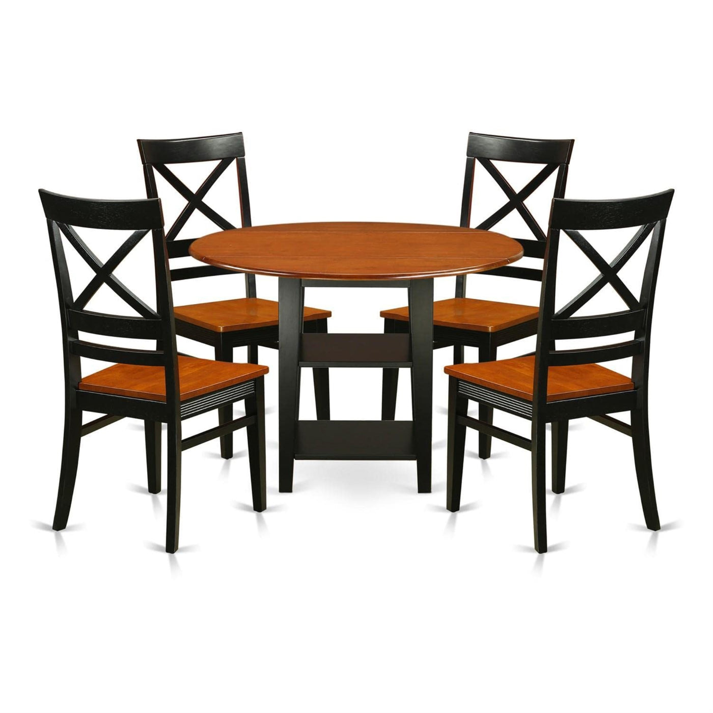 Suqu5-Bch-W Suqu5-Bch-W 5 Piece Sudbury Set With One Round Dinette Table And 4 X Back Dinette Chairs With Wood Seat In A Elegant Black And Cherry Finish., Outfit Your Dining Room In Effortless Style With This Essential 5 Piece Dining Set, Perfect For Weekday Meals And Family Gatherings Alike. Bask In The Greatness Of This Kitchen Set Thanks To The Quality Of Wood Used And Overall Aesthetic It Provides To Pretty Much Any Room It Is Placed In. The Table Sits On 4 Solid Legs And Features 2 Shelves Below The Table Top, Allowing You To Place Small To Medium Objects Securely Under The Table. We Guarantee The Quality And Safety When You Use This Product, So You Can Be Sure That Every Use Is Up To Par. This Particular Set Is Finished In A Classic Black & Cherry With Solid Wood Seats.