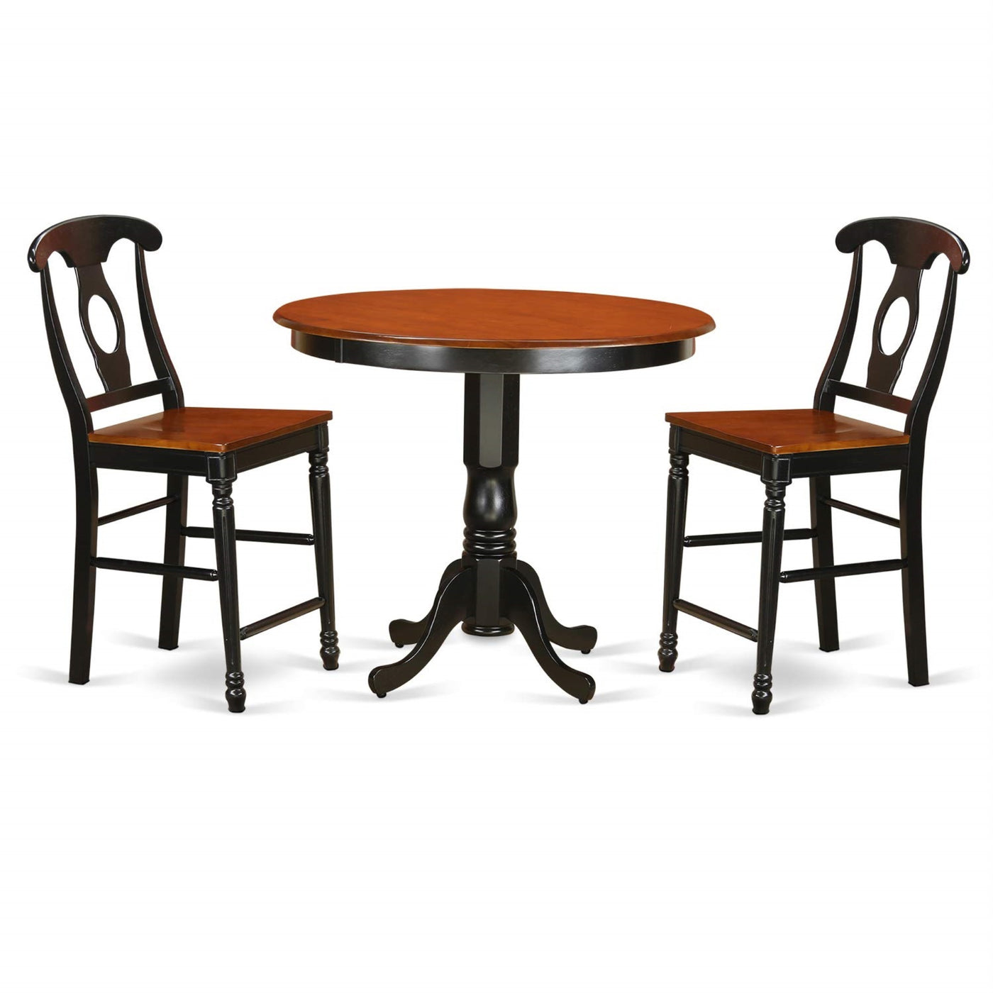 Casafoyer Trke3-Blk-W 3 Piece Counter Height Dining Table Set Contains A Round Kitchen Table And 2 Dining Room Chairs, 42X42 Inch, Black & Cherry