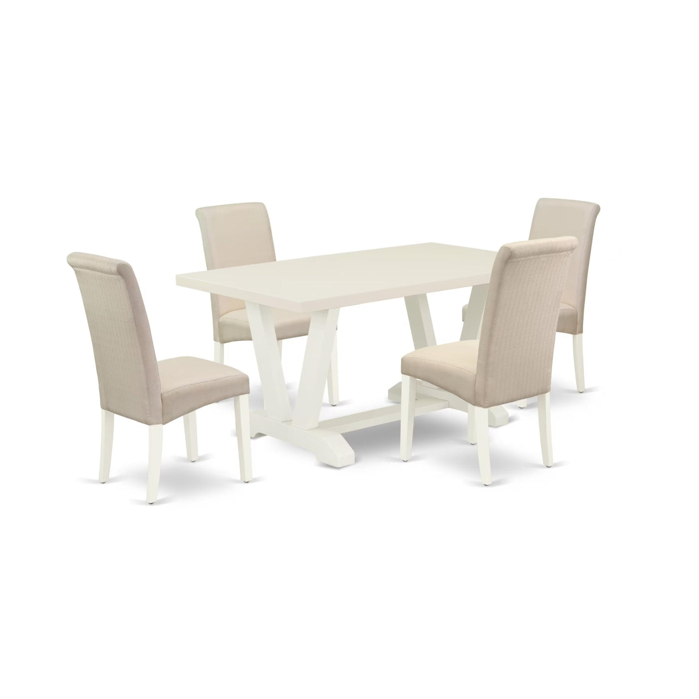 Casafoyer V-Style 5 Piece Dinette Set For 4 Includes A Rectangle Room Table With V-Legs And 4 Cream Linen Fabric Parsons Dining Chairs, 36X60 Inch, V026Ba201-5