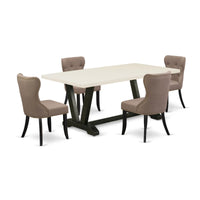 Casafoyer V-Style 5 Piece Room Furniture Set Includes A Rectangle Dining Table With V-Legs And 4 Coffee Linen Fabric Upholstered Chairs, 40X72 Inch, Multi-Color
