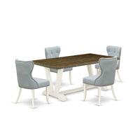 Casafoyer V-Style 5 Piece Set Includes A Rectangle Dining Room Table With V-Legs And 4 Baby Blue Linen Fabric Upholstered Parson Chairs, 40X72 Inch, Multi-Color