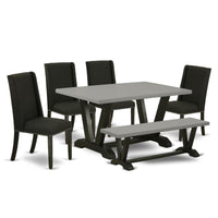 Casafoyer V-Style 6 Piece Modern Dining Set Contains A Rectangle Wooden Table With V-Legs And 4 Black Linen Fabric Parson Chairs With A Bench, 36X60 Inch, V696Fl624-6