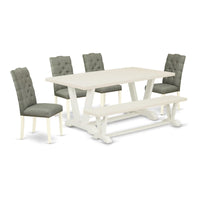 Casafoyer V-Style 6 Piece Modern Dining Set Contains A Rectangle Wooden Table With V-Legs And 4 Gray Linen Fabric Parson Chairs With A Bench, 40X72 Inch, V027El207-6
