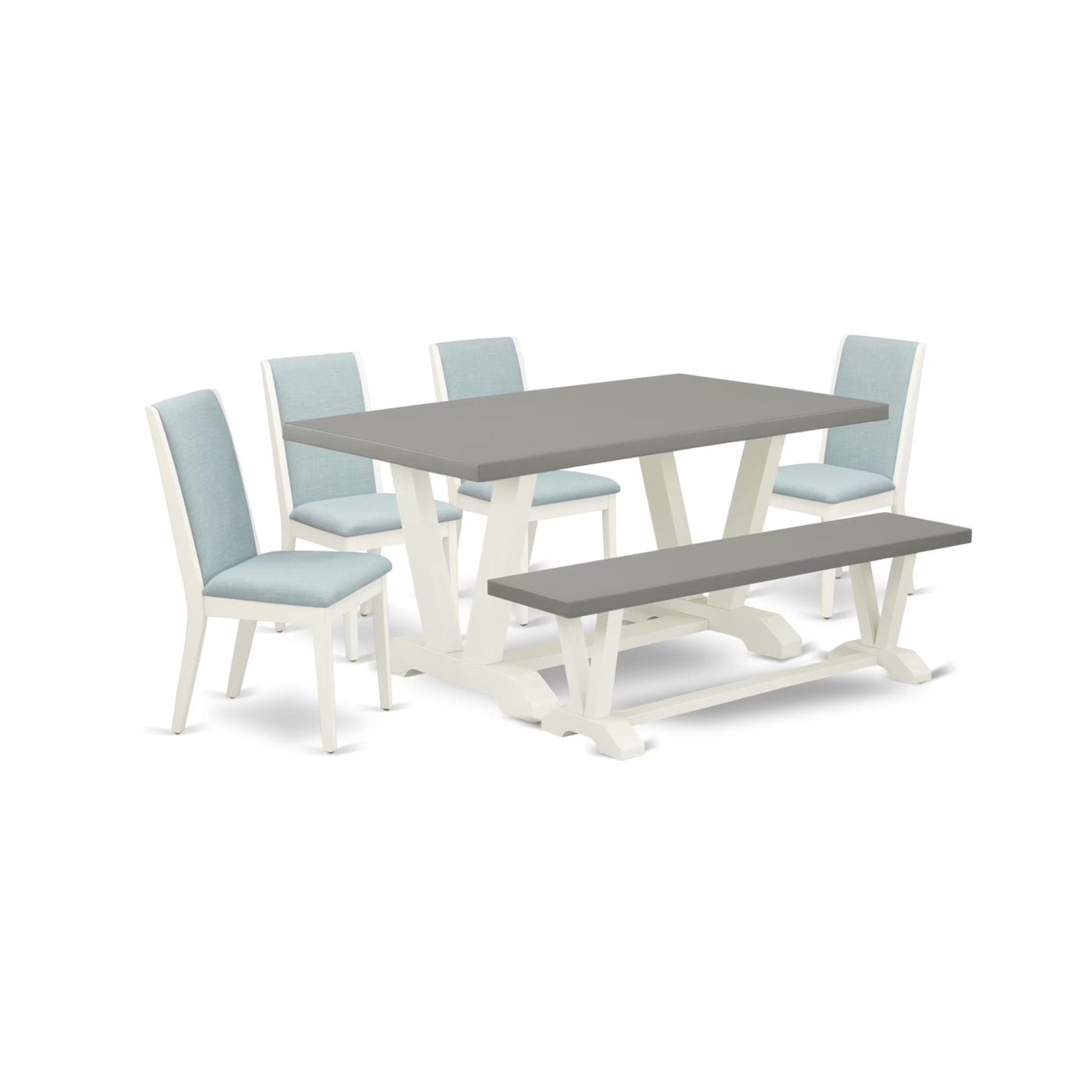 Casafoyer V-Style 6 Piece Set Contains A Rectangle Dining Room Table And 4 Baby Blue Linen Fabric Upholstered Chairs With A Bench, 36X60 Inch, Multi-Color