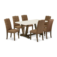 Casafoyer V-Style 7 Piece Dinette Set Consist Of A Rectangle Dining Room Table With V-Legs And 6 Brown Linen Fabric Upholstered Chairs, 36X60 Inch, Multi-Color