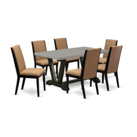 Casafoyer V-Style 7 Piece Room Furniture Set Consist Of A Rectangle Dining Table With V-Legs And 6 Light Sable Linen Fabric Upholstered Chairs, 36X60 Inch, Multi-Color