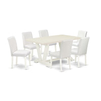Casafoyer V-Style 7 Piece Room Furniture Set Consist Of A Rectangle Dining Table With V-Legs And 6 White Faux Leather Upholstered Chairs, 36X60 Inch, V026Ab264-7