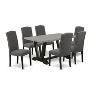 Casafoyer V-Style 7 Piece Room Set Consist Of A Rectangle Kitchen Table With V-Legs And 6 Dark Gotham Linen Fabric Parson Dining Chairs, 36X60 Inch, Multi-Color