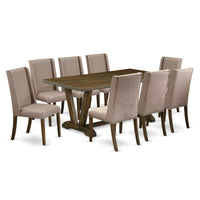 Casafoyer V-Style 9 Piece Dining Set Includes A Rectangle Kitchen Table With V-Legs And 8 Dark Khaki Linen Fabric Upholstered Chairs, 40X72 Inch, Multi-Color