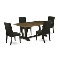 Casafoyer V677Fl624-5 5 Piece Set Includes A Rectangle Dining Room Table With V-Legs And 4 Black Linen Fabric Upholstered Parson Chairs, 40X72 Inch