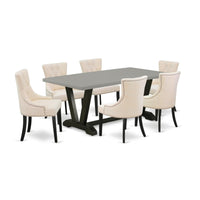 V697Fr102-7 East West Furniture V697Fr102-7 7-Pc Kitchen Dining Set - 6 Dining Chairs And 1 Modern Rectangular Cement Wood Dining Table Top With Button Tufted Chair Back - Wire Brushed Black Finish, East West Furniture - V697Fr102-7 - 7-Pc Dinette Room Setthis Kitchen Dining Set Includes 6 Mid Century Dining Padded Chairs And 1 Modern Dining Room Table. This Modern Kitchen Table Has A Rectangular Table Top And Gorgeous Legs. The Hardwood Frame And Soft Padded Back Ensure That These Dining Room Chairs Sturdiness And Offers Decent Support To Your Back, In Addition To Their Ideal Size These Urban Style Chairs Are Trouble-Free To Build And Easy To Rearrange. These Simple But Charming Dining Padded Chairs Will Add Ambiance And Style To Your Dining Room. Provide Your Home A Pop Of Chic Style With This Must-Have Dining Room Set. A Contemporary Twist On A Classic Design, This Eye-Catching Kitchen Dining Set Design Will Liven Up Any Timeless Appeal. Just By Switching Out Your Chairs And Wooden Dining Table, You Can Effortlessly Refresh Your Dining Space. This Dining Table Set Is Very Easy To Construct. You Only Need Around 1 Hour To Build This Kitchen Dining Set. This Dinette Room Set Comes With All The Necessary Hardware To Construct This Dinette Room Set. These Dining Chairs Are Easy To Carry Or Move Around. Enjoy With East West Furniture!Features:Fabric: Linen Fabriccushion Material: Foamfabric Color: Light Beigekitchen Dining Table Top Color: Cementparson Chairs Dimensions Are: Length 22; Width 21; Height 36.Rectangular Dining Table Dimensions Are: Length 72; Width 40; Height 30.Included In The Package: 1 Beautiful Wood Dining Table And 6 Gorgeous Dining Chairs.